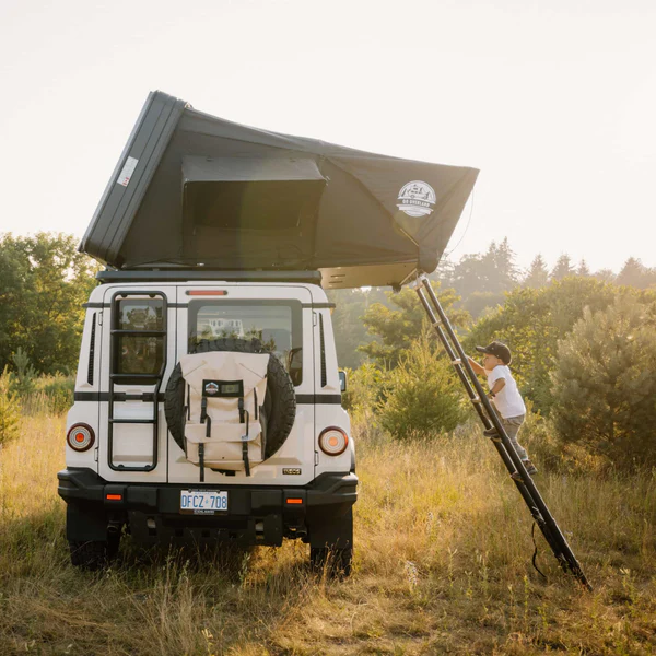 Tente de toit TentBox Classic 2.0 pour 2 personnes, avec coque ABS rigide, ouverture rapide en 60 secondes et matelas double couche inclus.