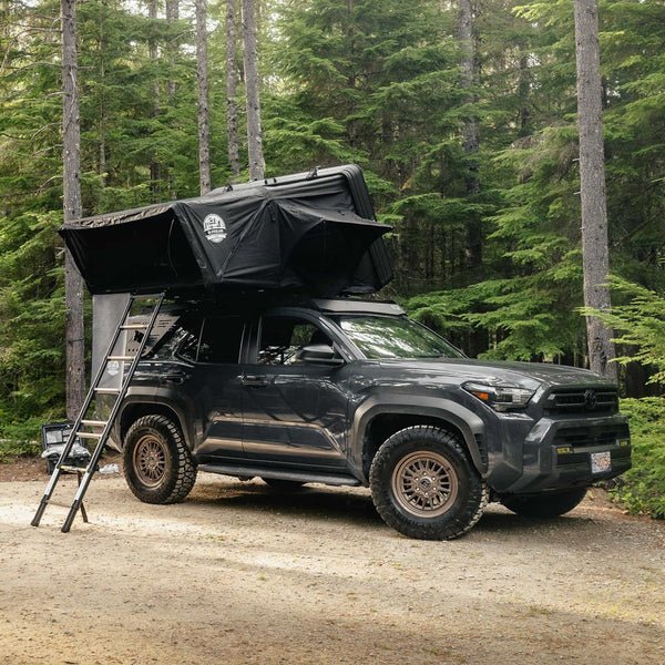 Tente de toit Swisskings Taiga Série Pro avec coque aluminium rigide, matelas mémoire 7 cm, toile respirante et chargement jusqu’à 300 kg pour aventures outdoor confortables.