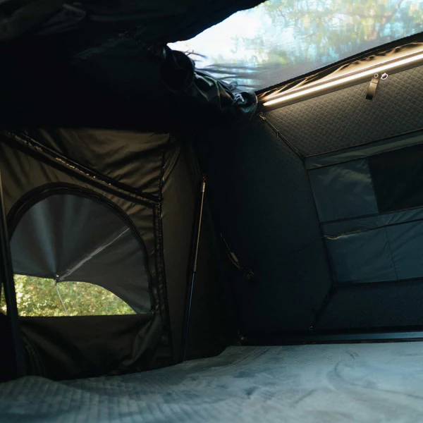 Le pack est livré complet avec tous les accessoires essentiels : barres de tente pour transporter jusqu’à 45 kg d’équipement, isolation thermique, échelle télescopique en aluminium, éclairage LED, tapis anti‑condensation, sacs à chaussures, rangements intérieurs, kit d’installation et caisse de transport en contreplaqué. Ce modèle est parfait pour les road‑trips prolongés, campings familiaux et expéditions tout terrain.