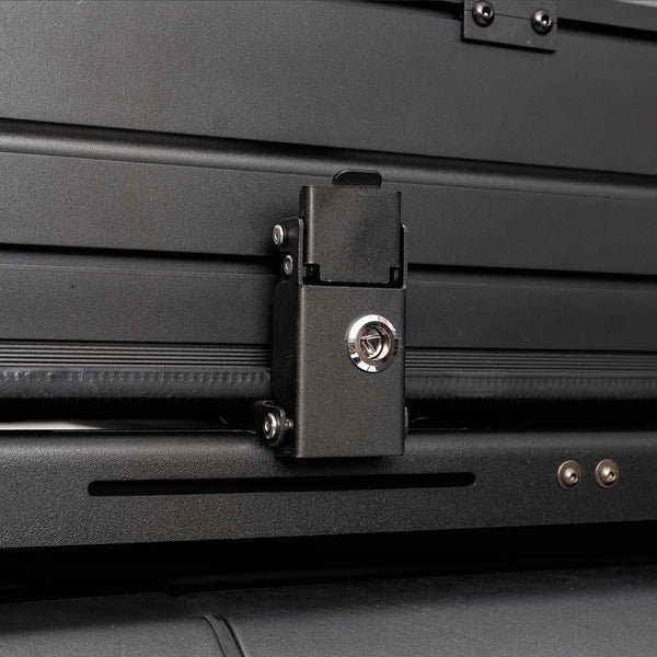 Horntools Track – Roof Top Tent 2 Pax compacte et robuste, compatible avec la plupart des véhicules équipés de barres de toit, offrant protection contre pluie et insectes.