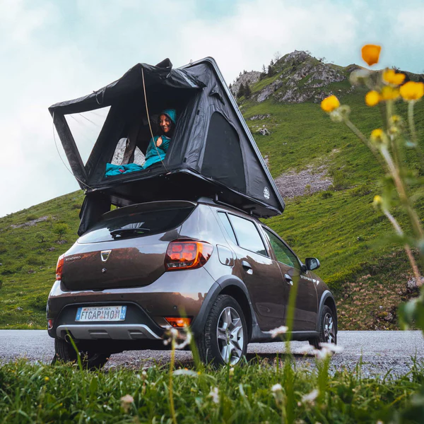 Tente de toit TentBox Classic 2.0 pour 2 personnes, avec coque ABS rigide, ouverture rapide en 60 secondes et matelas double couche inclus.
