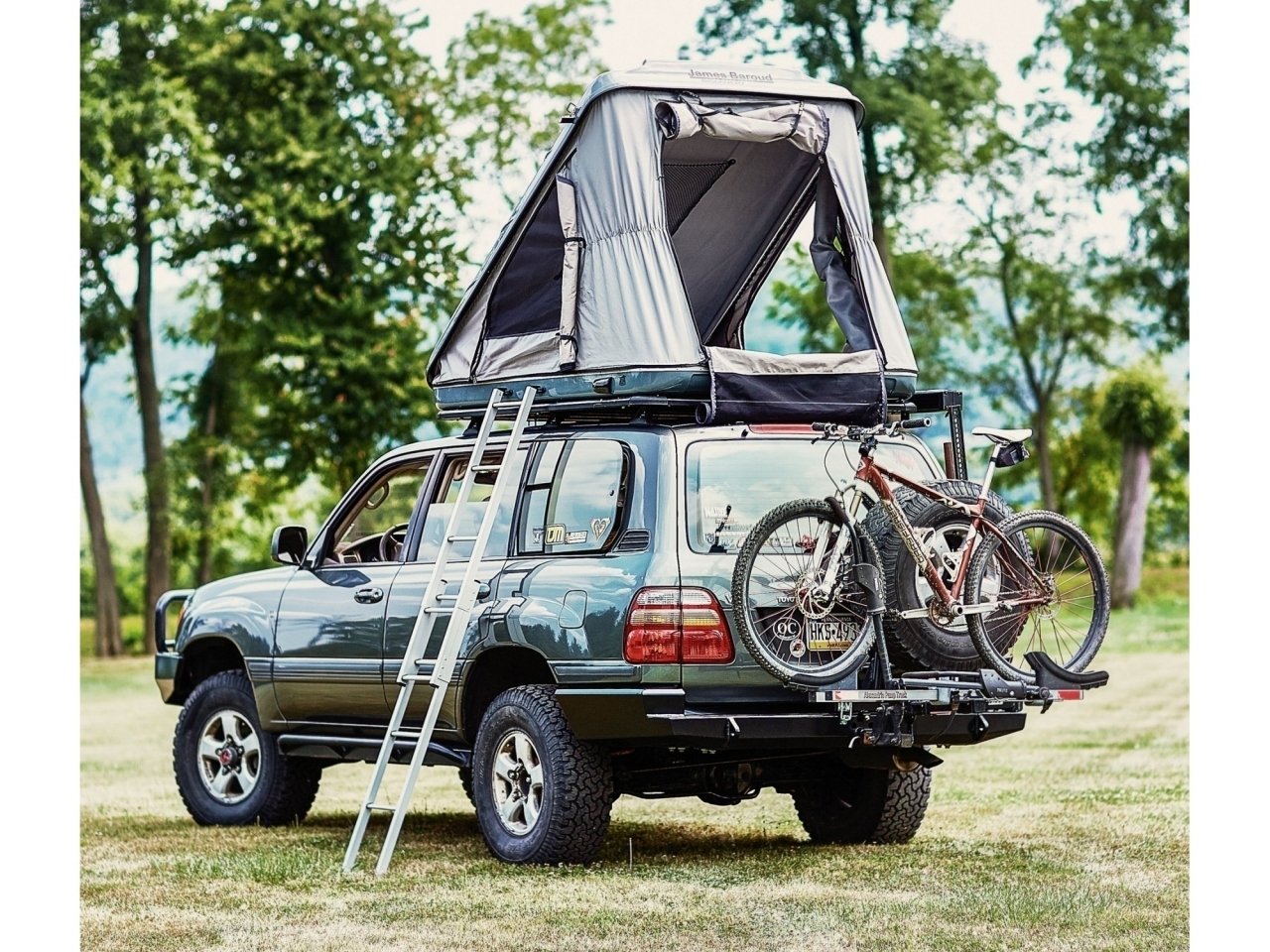 Tente de toit James Baroud Space M EVO avec couche rigide en fibre de verre, couchage 140×200 cm, ventilation solaire et matelas haute densité inclus.