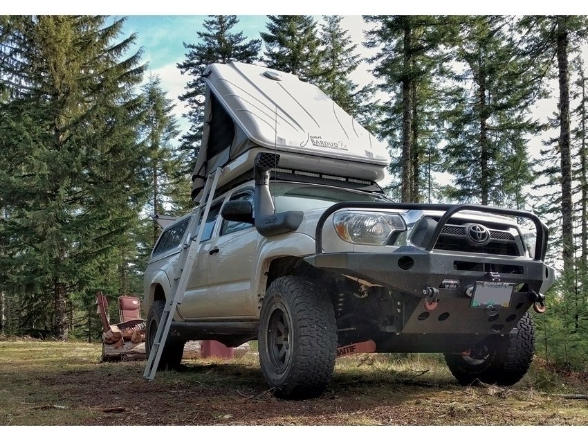 Horntools Track mit Vorzelt – tente de toit légère et robuste (≈46 kg) avec grandes fenêtres moustiquaires et espace auvent pratique pour rangement.