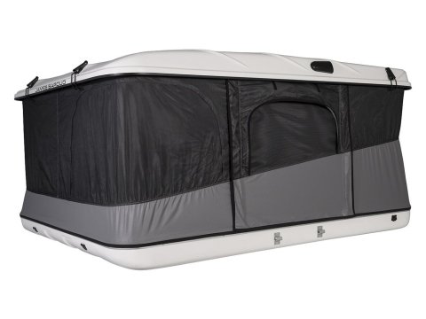 Sa coque rigide en fibre de verre renforcée, enduite d’un gelcoat anti‑UV, assure une protection durable contre les éléments et une excellente résistance au vent jusqu’à 120 km/h, tandis que le tissu textile triple‑couche breveté confère une isolation thermique supérieure et une étanchéité durable.
