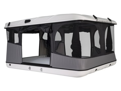 La tente de toit James Baroud Grand Raid M EVO est conçue pour les aventuriers qui désirent confort et robustesse. Elle offre un espace de couchage d’environ 198 × 140 cm, adapté pour deux adultes et un enfant. Sa coque rigide en fibre de verre à triple couche avec revêtement gelcoat UV assure une protection durable contre les intempéries et une excellente performance tout terrain.