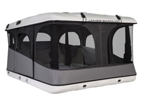 Tente de toit James Baroud Nova Frontier L avec coque rigide ABS 4 mm anti‑UV, vues panoramiques à 180° et matelas haute densité inclus.