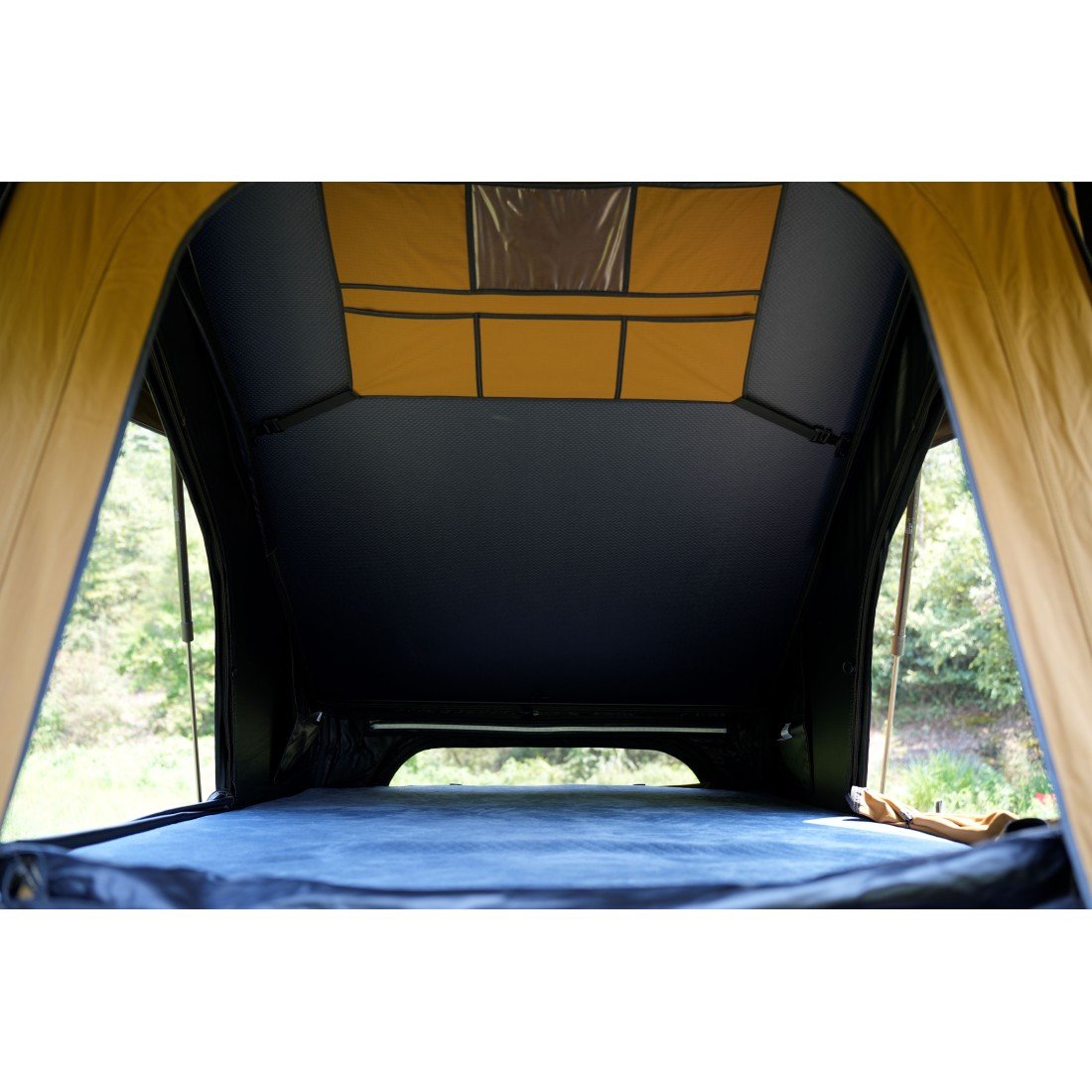 Tente de toit Dometic Front Runner avec toile ripstop hydrofuge, base isolée, matelas mousse haute densité et accès par échelle coulissante.