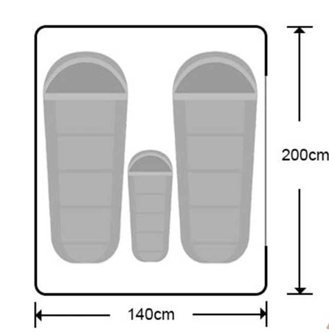 L’intérieur comprend un couchage généreux (environ 140 × 200 cm) avec mousse confortable, de larges fenêtres panoramiques à moustiquaires pour la ventilation, ainsi que des poches de rangement intégrées. Un bandeau LED est fourni pour éclairer l’espace intérieur lors de vos soirées en camping.