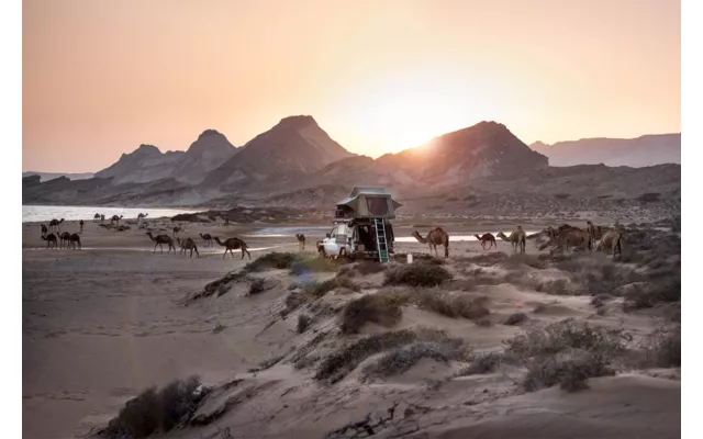 La tente de toit James Baroud Evasion M EVO combine une coque rigide en fibre de verre, ventilation solaire silencieuse, matelas haute densité et vues panoramiques pour un bivouac confortable.