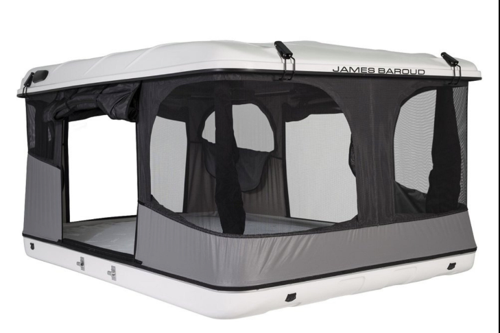 Tente de toit James Baroud Nova Frontier L avec coque rigide ABS 4 mm anti‑UV, vues panoramiques à 180° et matelas haute densité inclus.