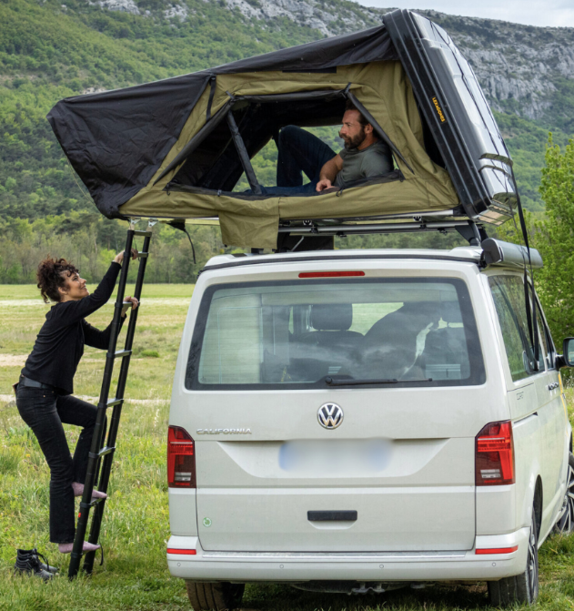 HRBIVACAR HRB 1.5 Book 3 Personnes – tente rooftop spacieuse avec échelle télescopique, éclairage LED USB et possibilité de transporter jusqu’à 30 kg sur les barres de toit.