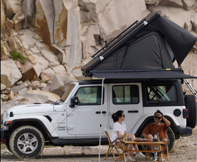Tente de toit Swisskings 190L avec structure aluminium, ouverture rapide en 90 s, couchage pour 4 personnes et ventilation optimisée.